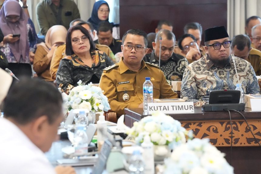 Pertemuan yang digelar di Ruang Ruhui Rahayu, Kantor Gubernur Kaltim, Selasa (5/8/2025), dibuka langsung oleh Gubernur Kaltim H Rudy Mas’ud secara daring dari Jakarta. Hadir secara luring Wakil Gubernur Kaltim H Seno Aji, Sekretaris Provinsi Sri Wahyuni, serta kepala daerah se-Kaltim, termasuk Wakil Bupati Kutai Timur (Wabup Kutim) H Mahyunadi bersama Kepala Dinas Tenaga Kerja dan Transmigrasi Kutim Roma Malau, Kepala Badam Pendapatan Daerah Kutim Syahfur, Kepala Dinas Ketahanan Pangan Kutim Ery Mulyadi, Kabag Ekonomi Setkab Kutim.Vita Nurhasanah. Kegiatan dimulai sejak pukul 08.50 WITA dan dihadiri pula oleh perwakilan Forkopimda, BUMN, BUMD, serta pelaku usaha.